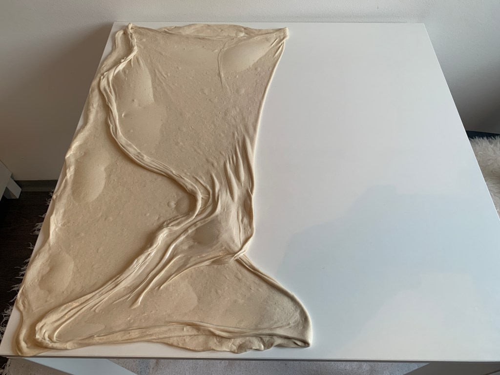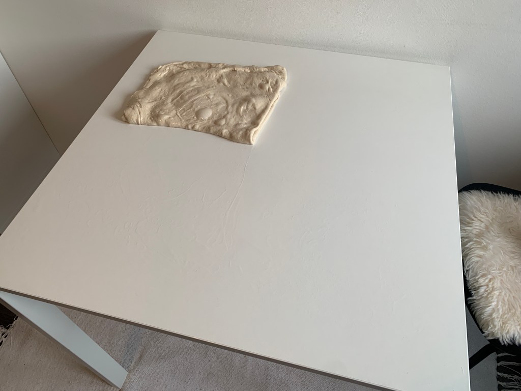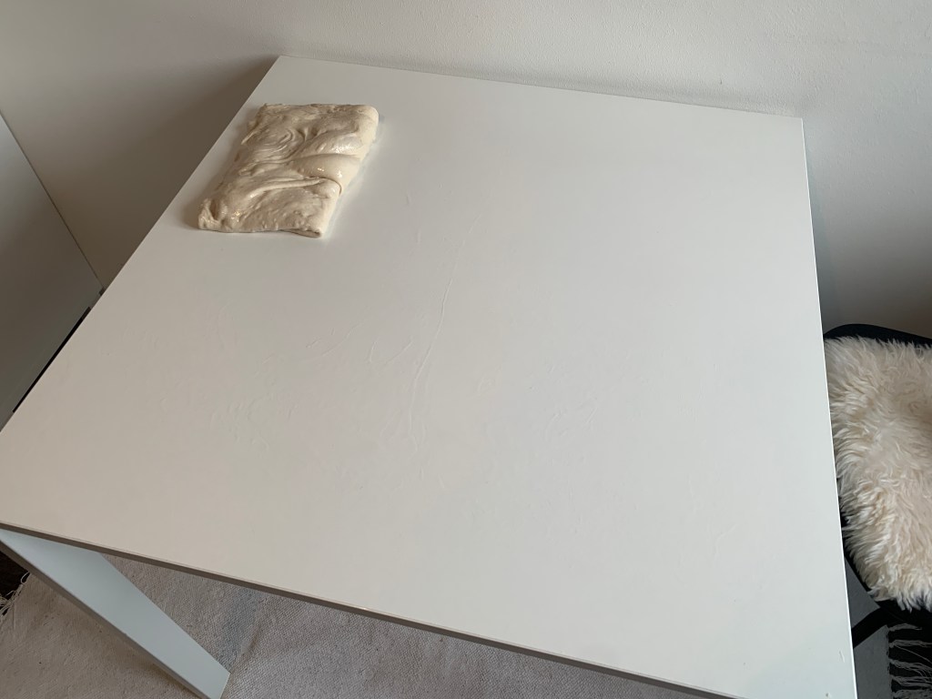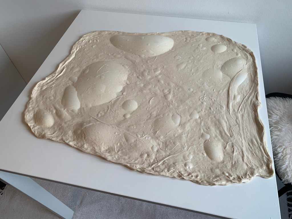 Jetzt wird der gereifte Teig zum zweiten Mal laminiert. Danach wieder abdecken und für 90 Minuten reifen lassen.