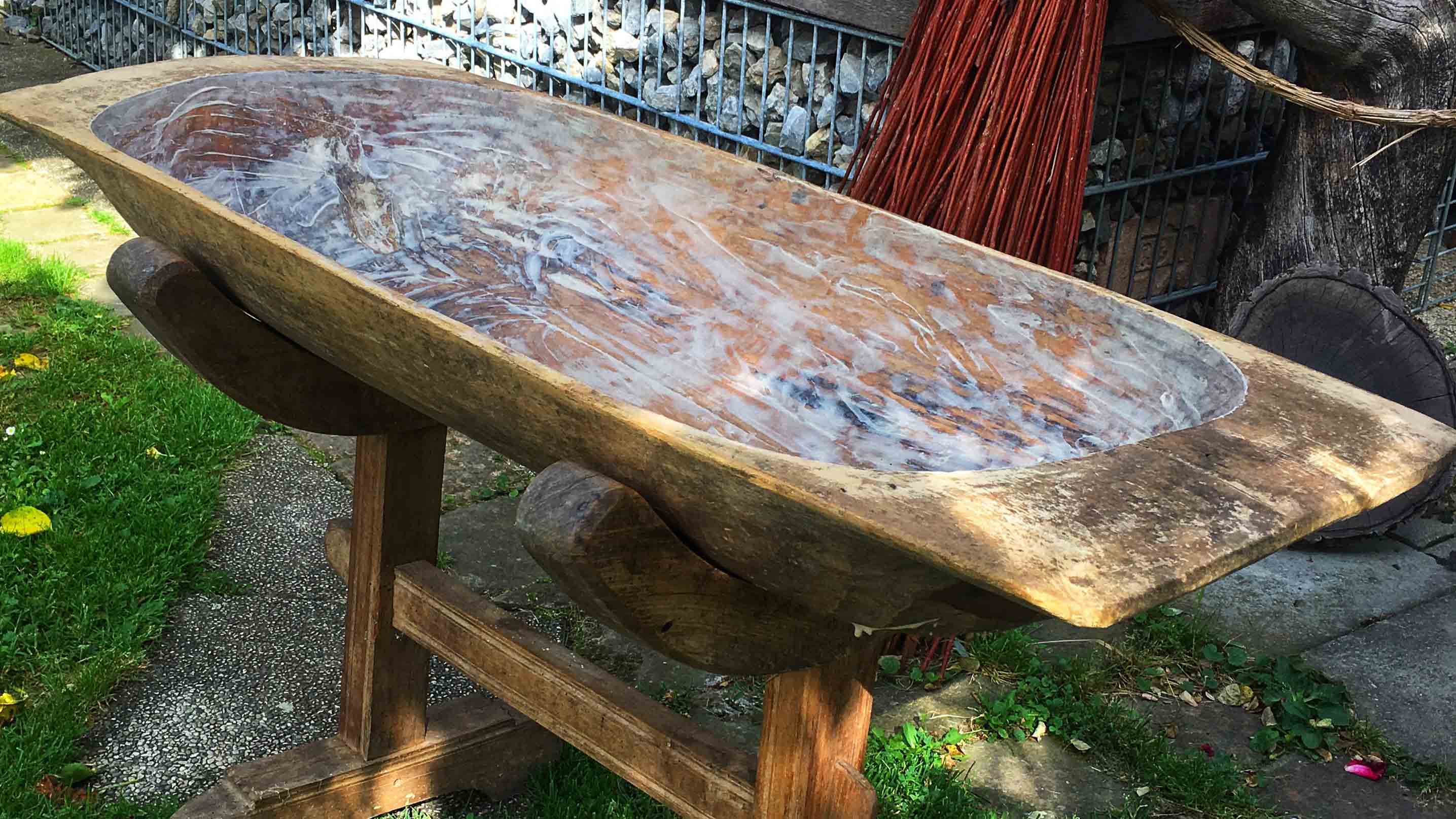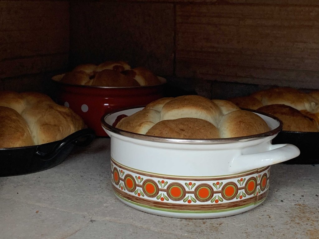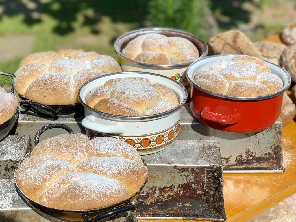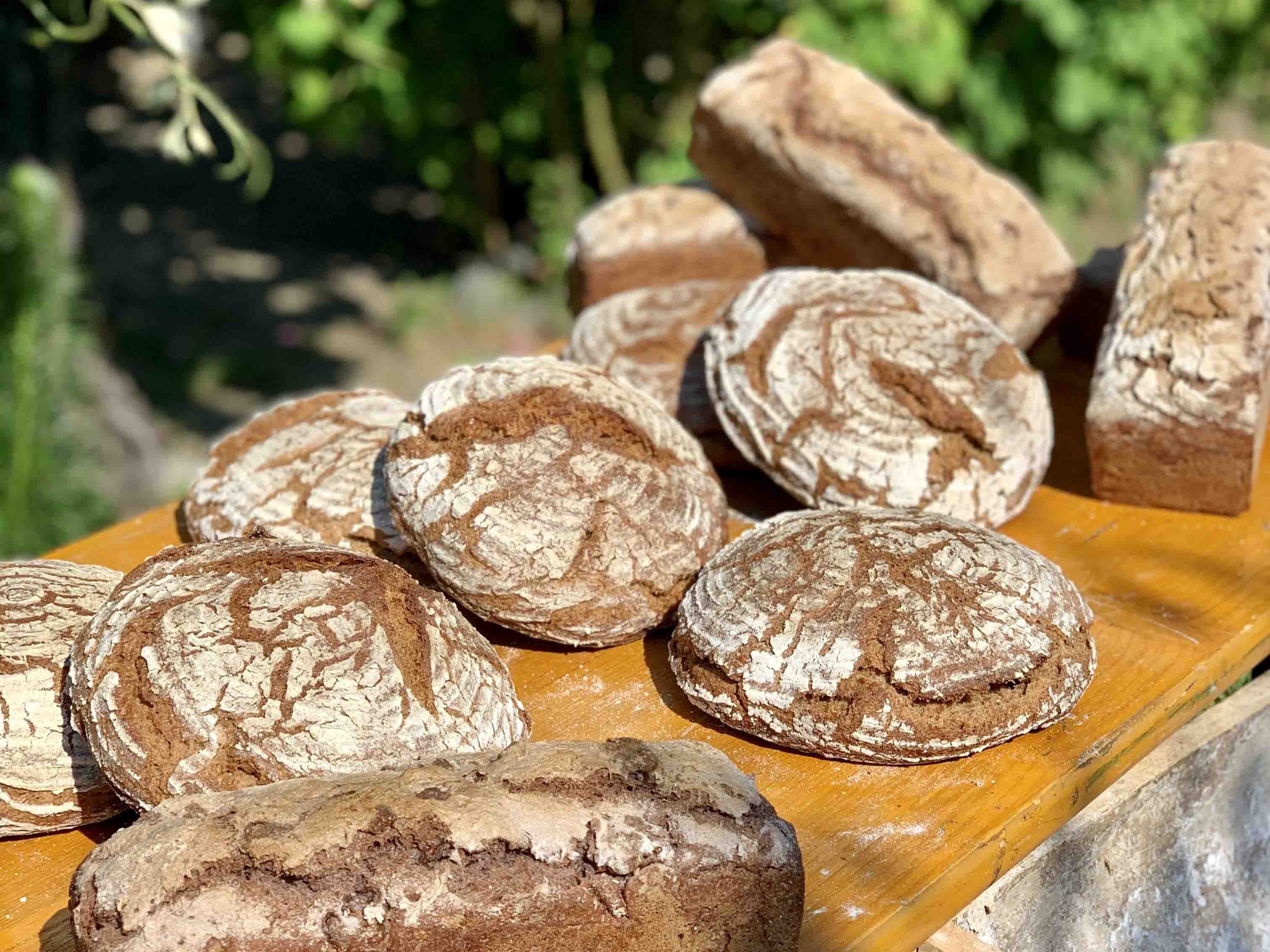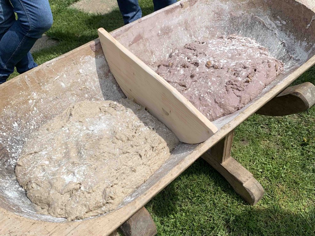 Der erlebnisreiche Backtag startet mit einem gekühlten Gläschen Sekt und anschließend werden die ersten Holzscheiter im Holzofen angezündet. Darauf werden wir die weichen Brotteige wie früher im alten Holztrog von Hand kneten. Während die Sauerteigbrotteige in Ruhe reifen, kannst du dir ein schattiges Plätzchen im Garten suchen und entspannen, bevor wir uns ein gschmackiges Mittagessen im urigen Holzbackofen backen. Zum feinen Abschluss backen wir uns noch eine Süßigkeit, mit der wir kulinarisch den Tag ausklingen lassen.